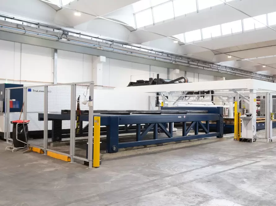 Oggi disponiamo di 3 impianti di taglio laser a carico e scarico automatico che lavorano fogli di dimensioni massime di 6500 x 2000 mm.